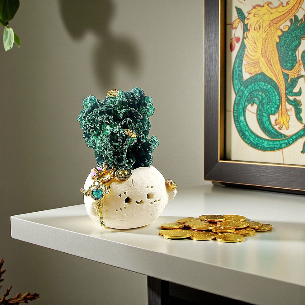 The Ushers of Money Many Many Malachite stands as an energetically aligned wealth activator, carefully designed in accordance with Feng Shui principles to enhance money flow within your space. When thoughtfully placed and intentionally positioned, its presence harmonizes with the surrounding environment, helping to generate a focused prosperity field that supports financial attraction, circulation, and sustained abundance.