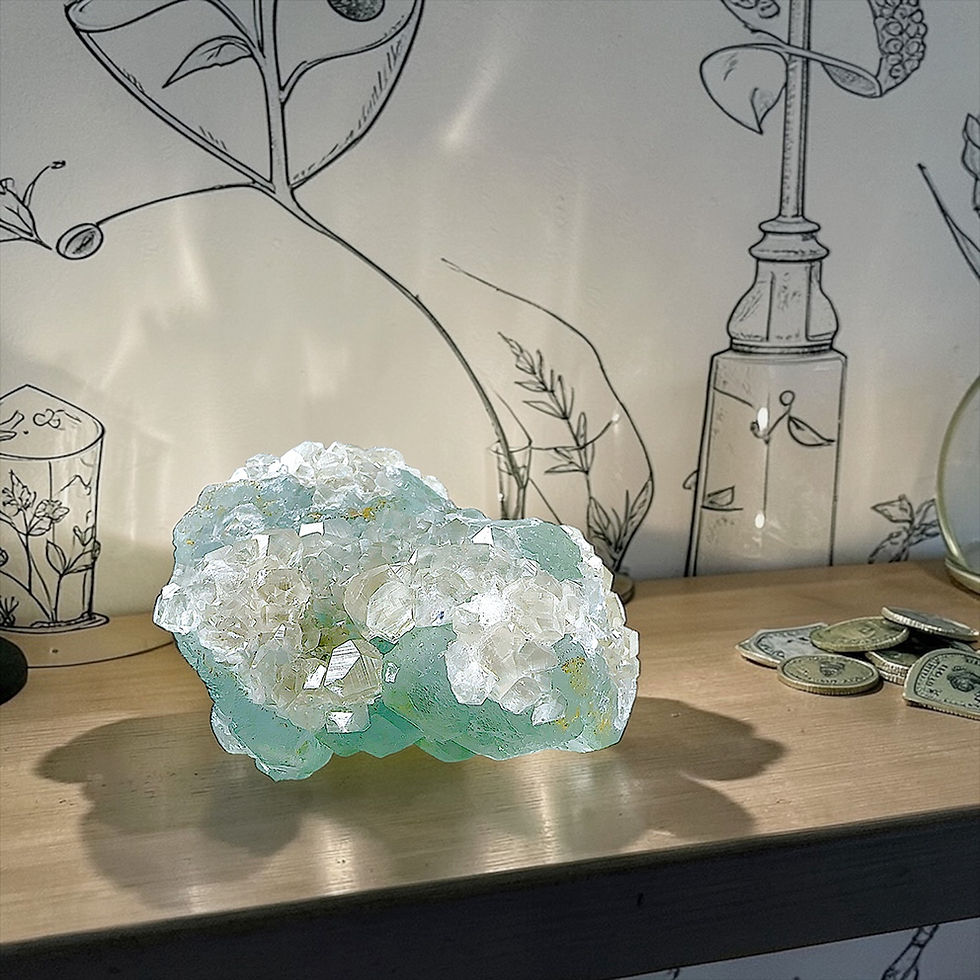 The fusion of Fluorite and Sugar Calcite ensures that this process is both structured and magnetic. Fluorite organizes the keeper’s energy to align with career insight and strategy (Star 1), while Sugar Calcite attracts the right people, circumstances, and opportunities (Star 8). Together, they create a natural flow where favor accumulates quietly, then expresses itself visibly — a direct precursor to wealth climax.